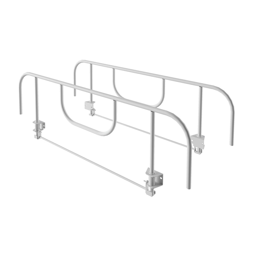 Ограждения боковые MBМ-06 (КМ 3) устанавливаются на медицинских кроватях и предотвращают возможные падения больных во время транспортировки или сна. Ограждения изготовлены из металлической трубы диаметром 20 мм и покрыты полимерной краской белого цвета. Для фиксации на кровати ограждения оснащены кронштейнами. Аксессуар оборудован специальным механизмом, позволяющим складывать и фиксировать ограждение в заданном положении.