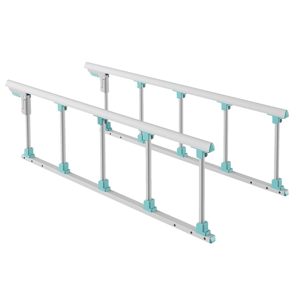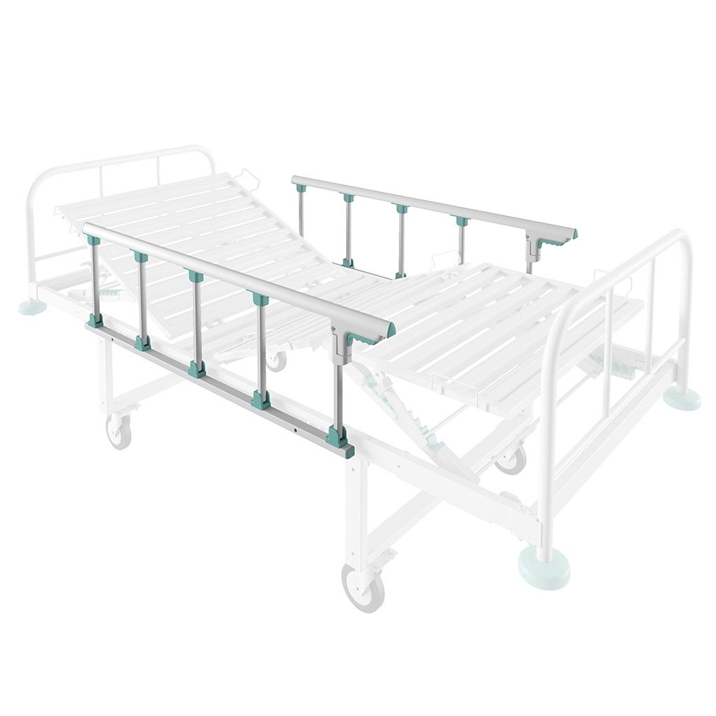 Боковые ограждения MBA-03 (КМ 1) — практичное дополнение к медицинской кровати, которое помогает снизить риск случайных падений во время сна или перевозки пациента. Конструкция выполнена в виде вертикальных складывающихся секций: при необходимости ограждения быстро поднимаются, а когда они не нужны — аккуратно опускаются, не мешая уходу и пересаживанию.