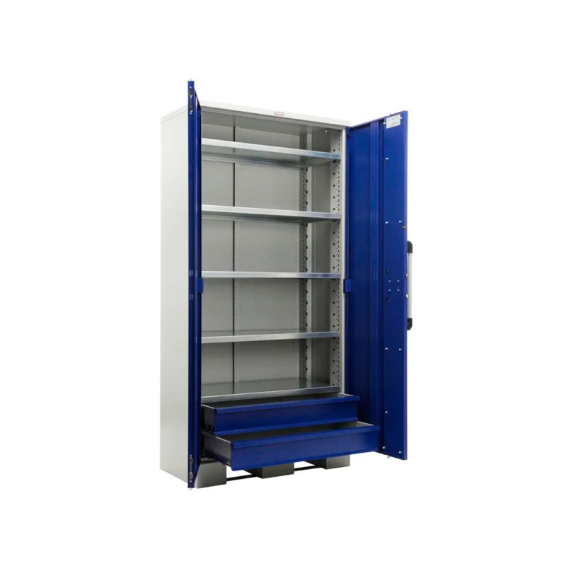 серый полуматовый (RAL 7038), двери синие (RAL 5002)
