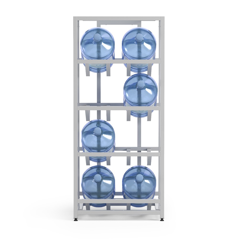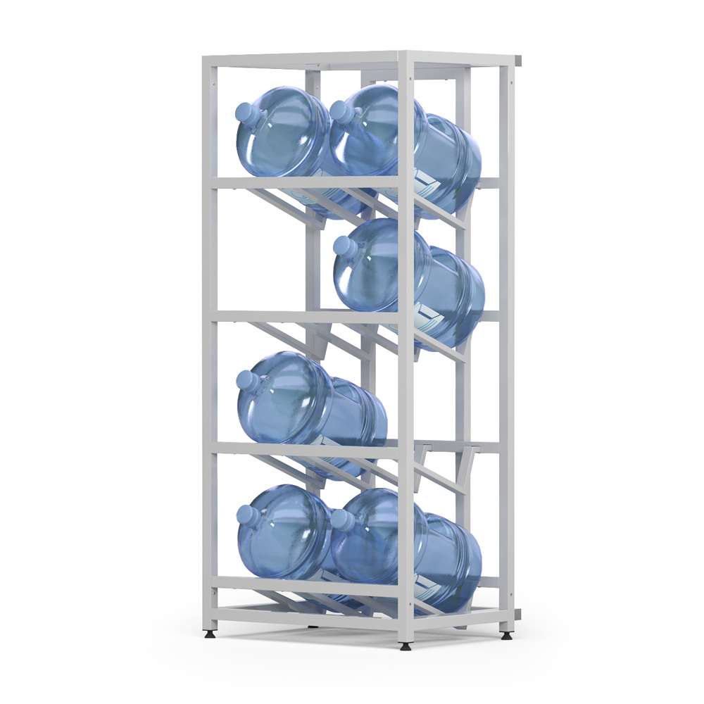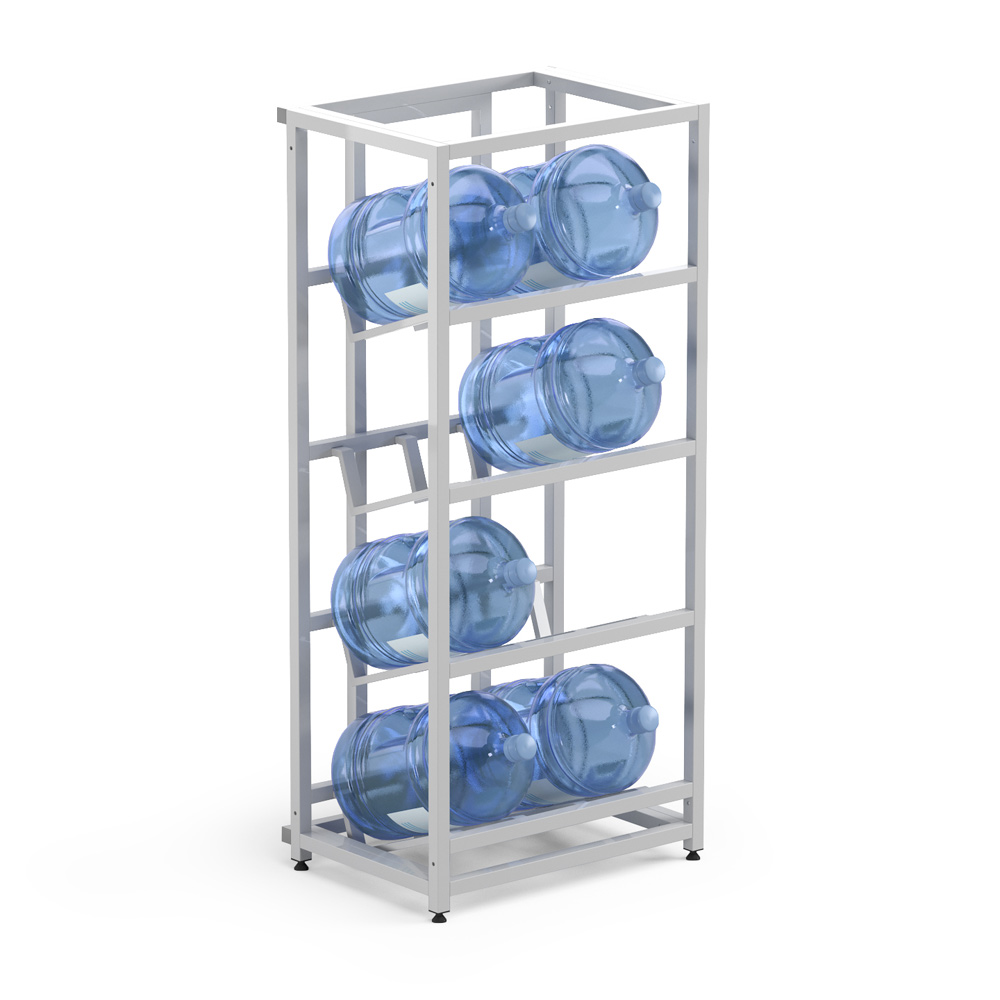Этот стеллаж создан для тех, кто ценит эргономичность без компромиссов. Четыре полки аккуратно разместят ваш запас воды, превратив хаотичное хранение в организованную систему.