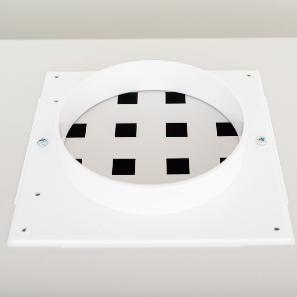 - В крышке шкафа расположено отверстие для выхода воздуха. В комплекте фланец для подключения к внешней системе вентиляции.