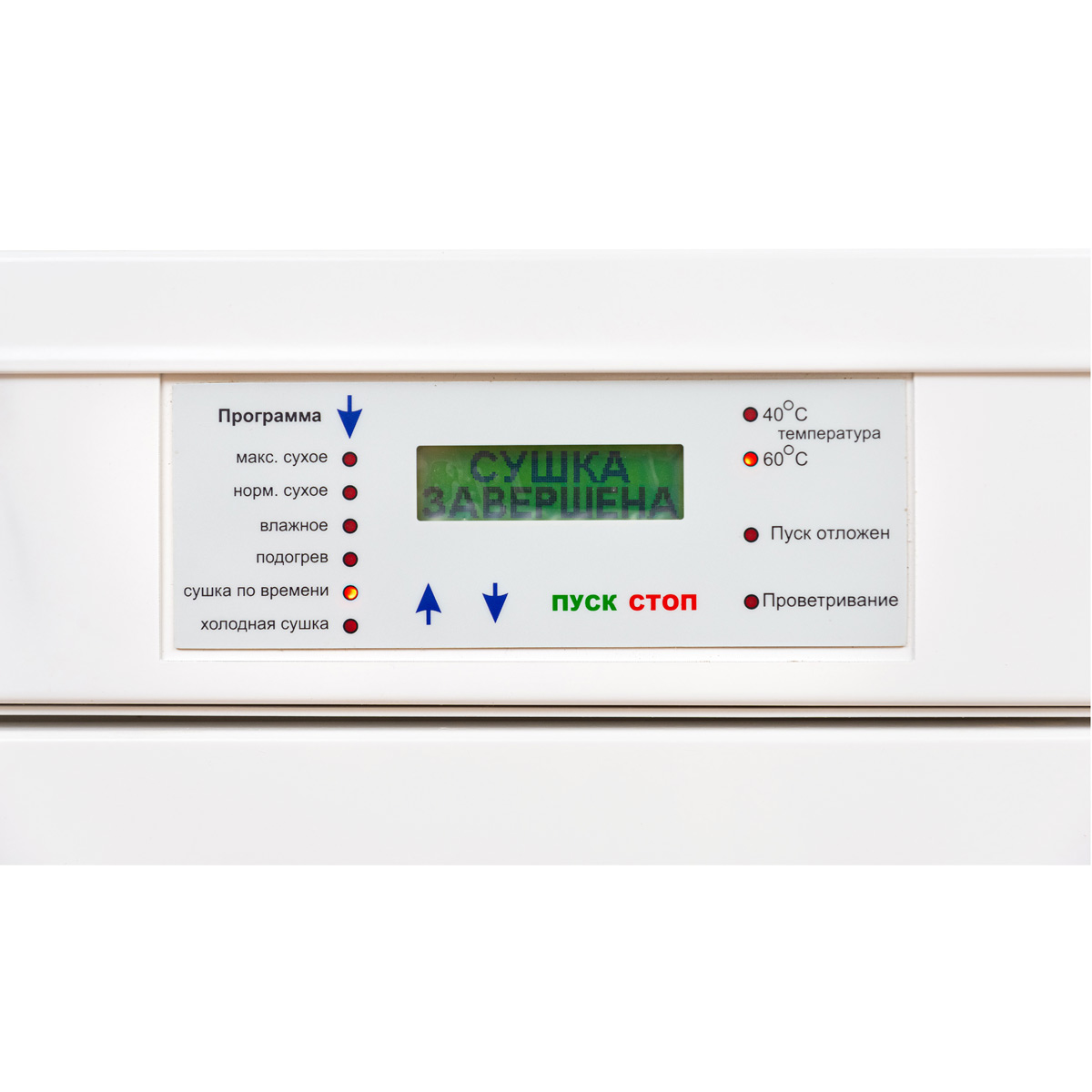 - Встроенный таймер с плавной регулировкой позволяет осуществлять режимы сушки по времени и отложенный пуск программ.