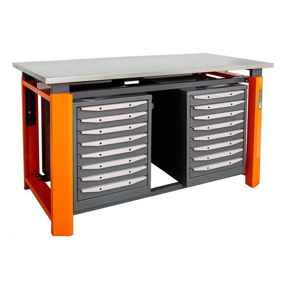 Отдельное преимущество модели — возможность регулировки высоты столешницы в диапазоне от 924 до 1044 мм. Это позволяет адаптировать верстак под рост сотрудника, специфику работ и привычный формат рабочего процесса. Такой вариант особенно удобен там, где за одним местом работают разные люди или требуется подобрать наиболее комфортную высоту под конкретные операции.